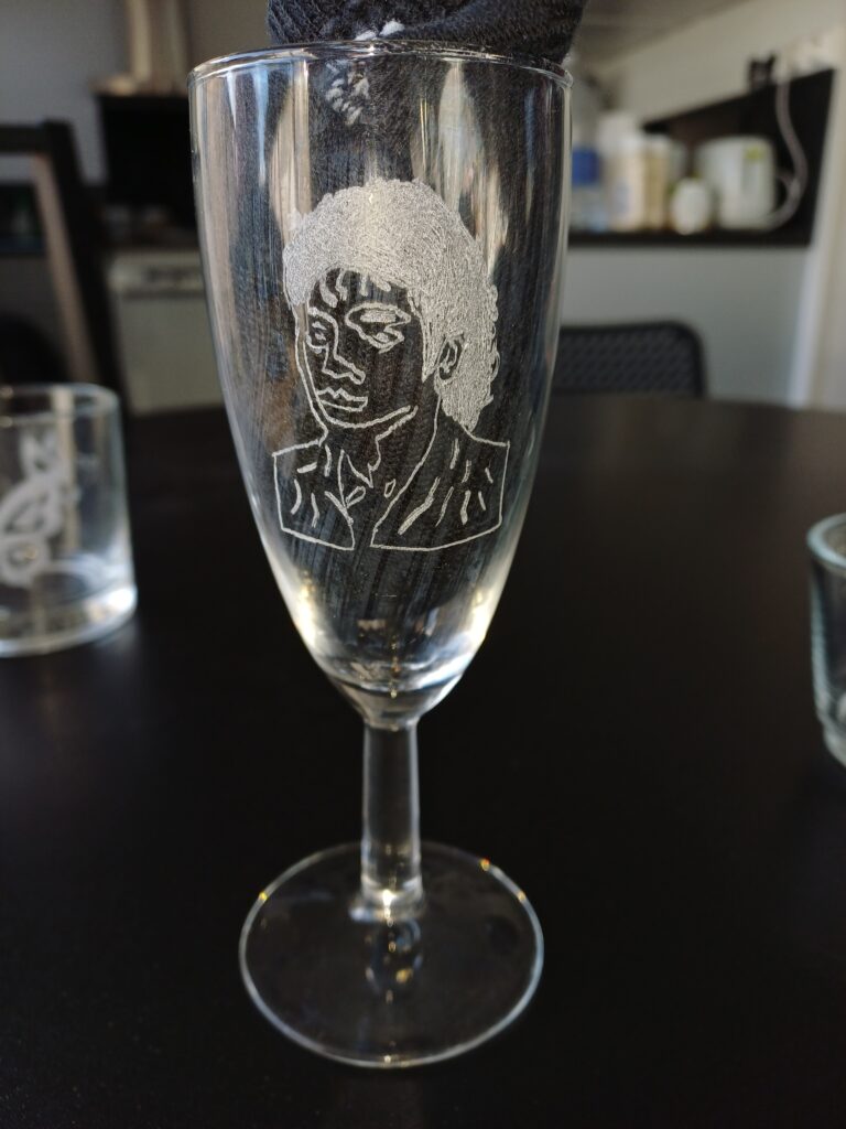 Double essai sur une vieille coupe à champagne.